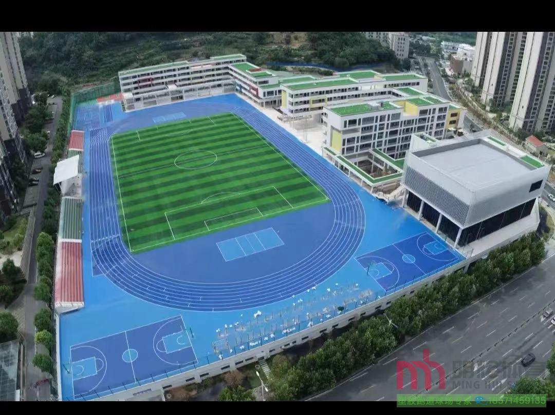 湖北省宜昌市田家炳中小学近铺装完成了田径运动场,其中引人注目的就是新建的塑胶跑道。这条跑道采用了国标标准,呈现出清新明亮的蓝色,具有环保、等特点,为学校的体育教育提供了更好的条件。